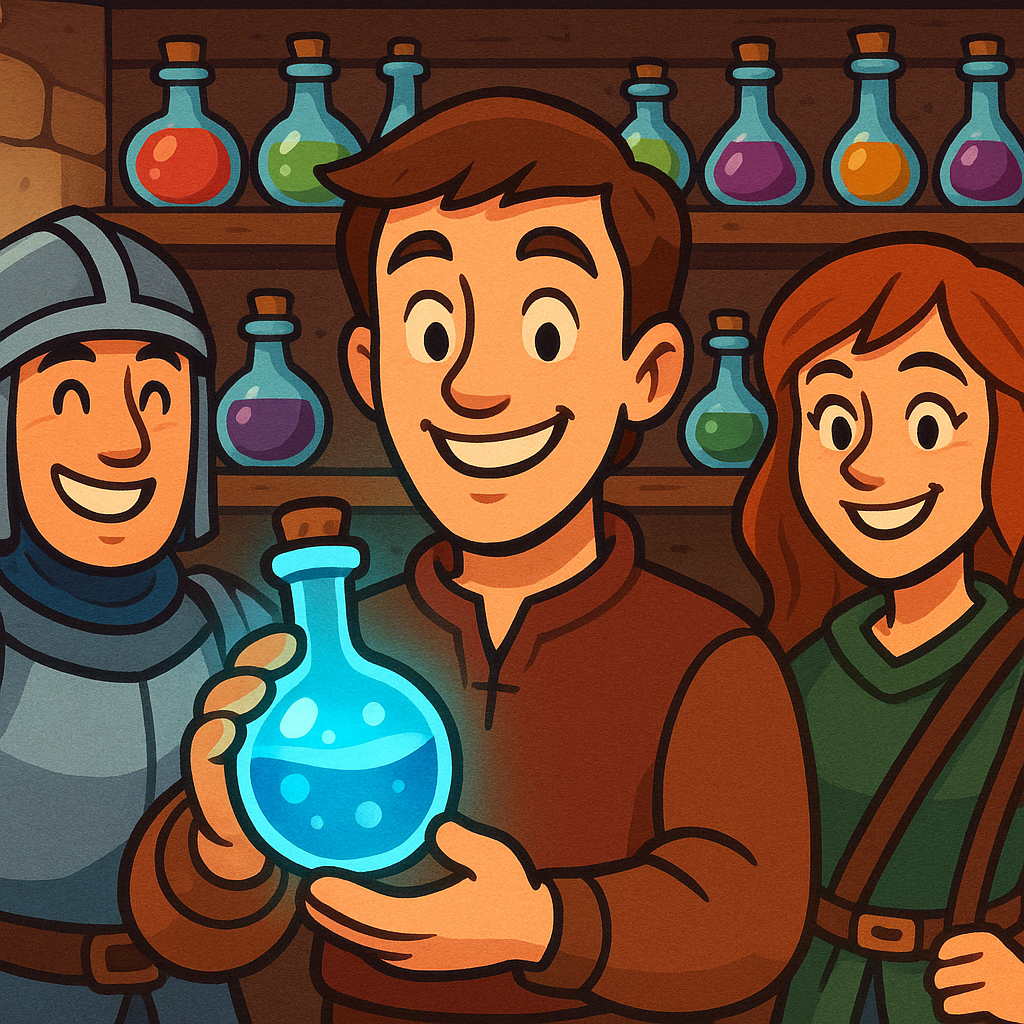 Craft Healing, Mana, Luck, Love, and Poison potions using a clear recipe system and ingredient management. -